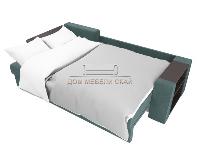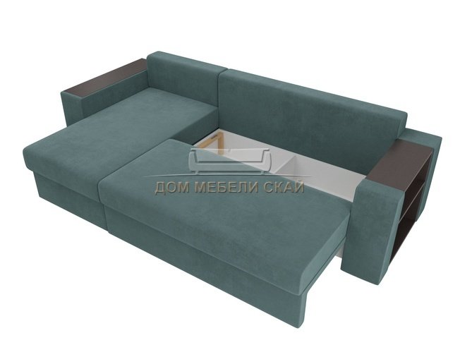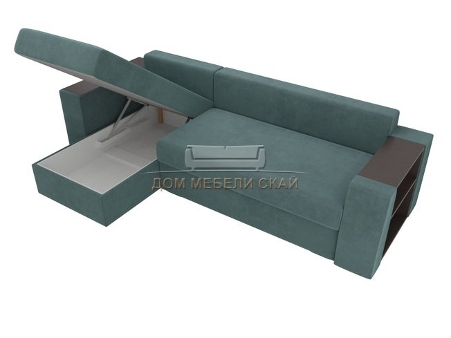 Угловой диван-кровать левый Эридан, бирюзовый/велюр