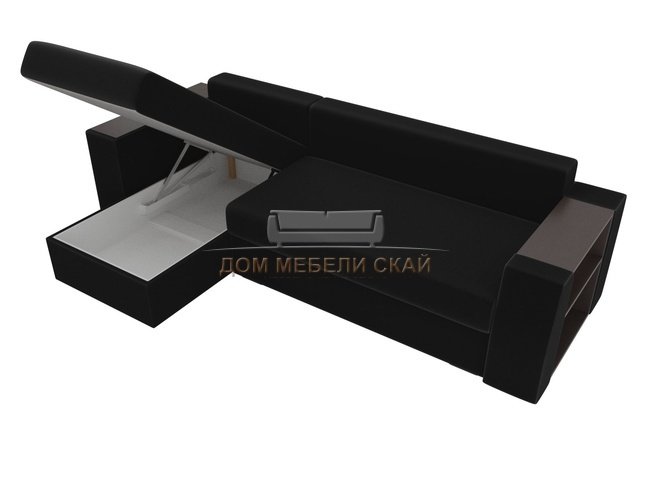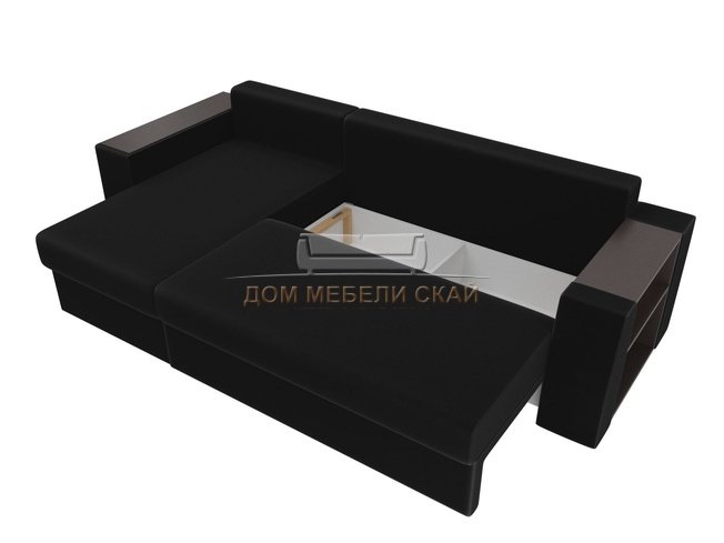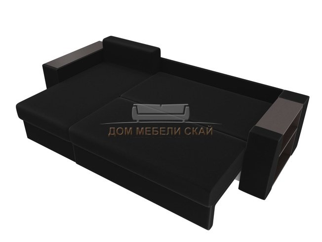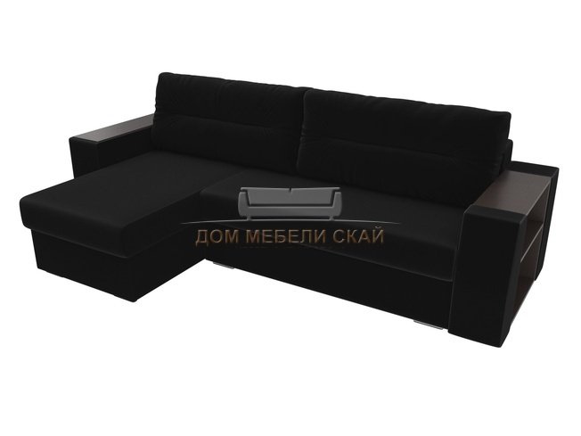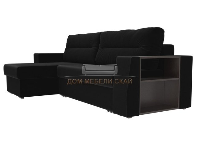 Угловой диван-кровать левый Эридан, черный/микровельвет