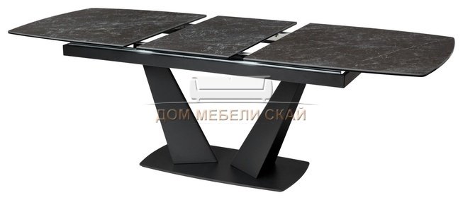Стол обеденный раздвижной ACUTO2 170, BLACK MARBLE/черный мрамор матовый/керамика/черный каркас