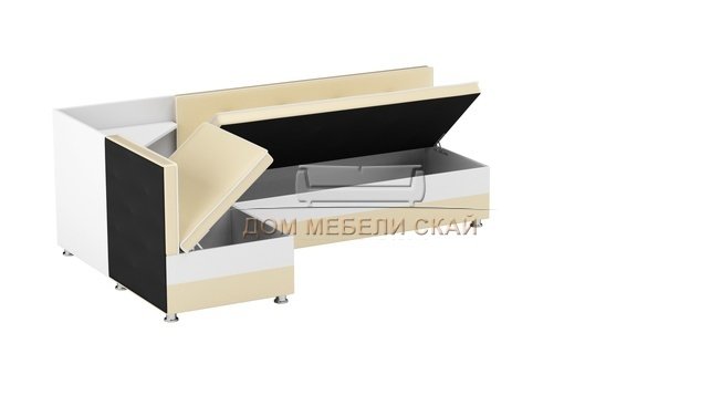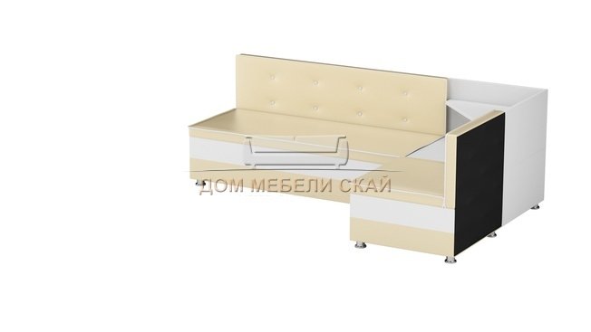 Кухонный угловой диван правый Милан, бежевый/белый/экокожа