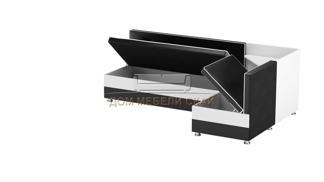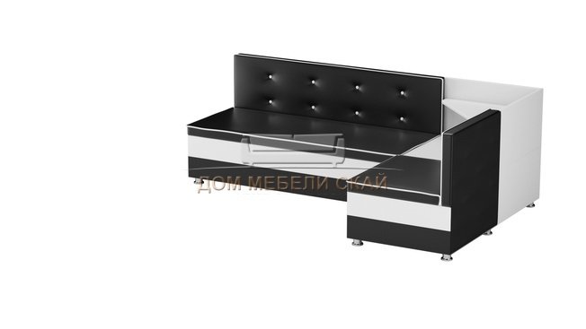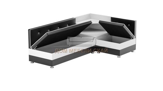 Кухонный угловой диван правый Милан, черный/белый/экокожа