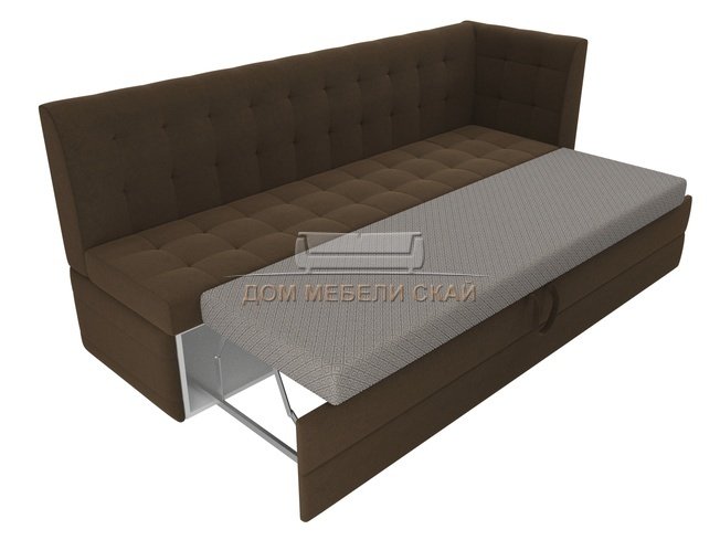 Кухонный угловой диван со спальным местом правый Бриз, коричневый/микровельвет