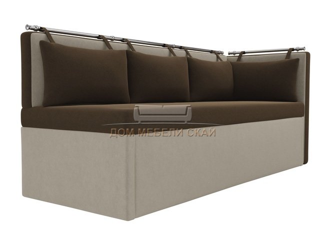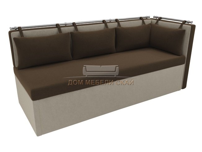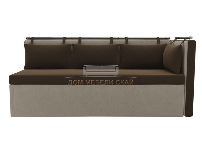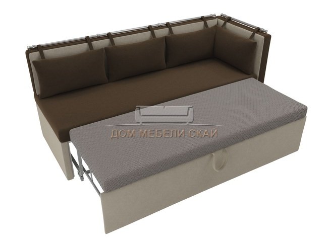 Кухонный угловой диван со спальным местом правый Метро, коричневый/бежевый/микровельвет