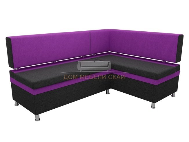 Кухонный угловой диван правый Стайл, черный/фиолетовый/микровельвет