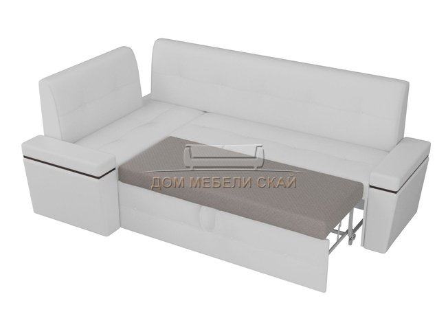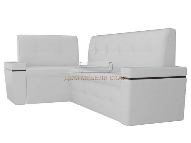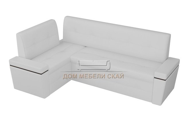 Кухонный угловой диван левый Деметра, белый/экокожа