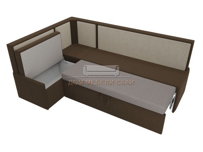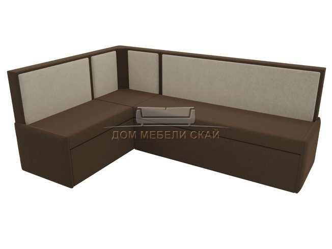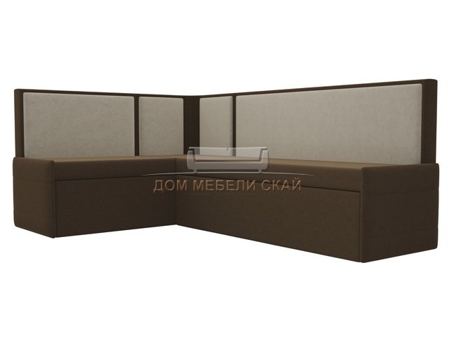Кухонный угловой диван левый Кристина, коричневый/бежевый/микровельвет