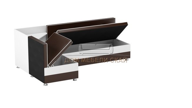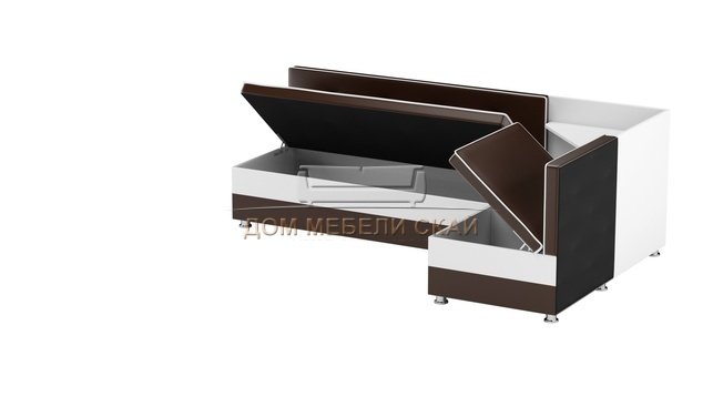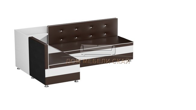 Кухонный угловой диван левый Милан, коричневый/белый/экокожа