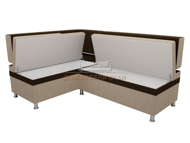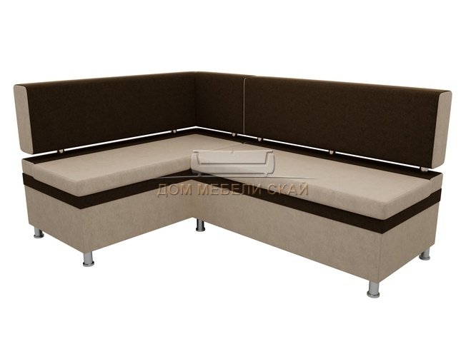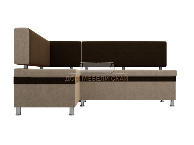 Кухонный угловой диван левый Стайл, бежевый/коричневый/микровельвет
