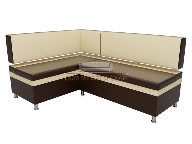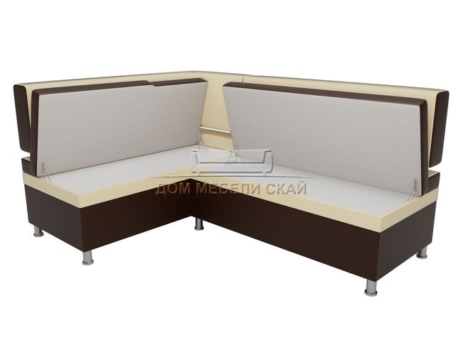 Кухонный угловой диван левый Стайл, коричневый/бежевый/экокожа