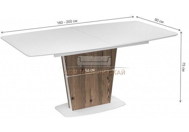 Стол обеденный раздвижной Оливер, лиственница горная/белый