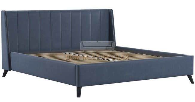 Кровать двуспальная Мелисса 180х200 с ПМ, тори 83 велюр серо-синий