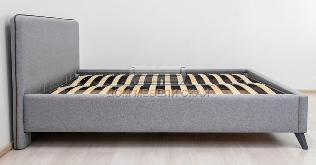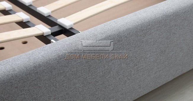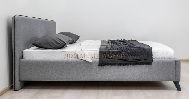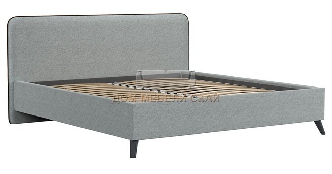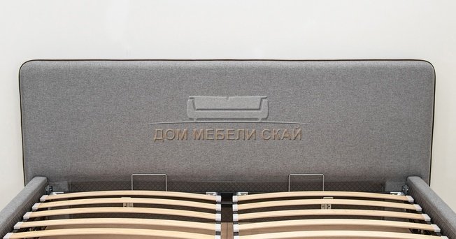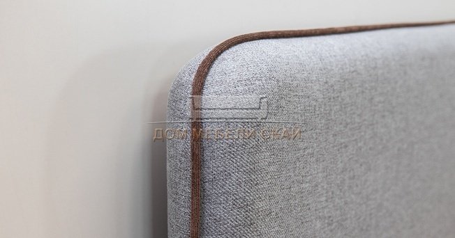 Кровать двуспальная Миа 180х200 с ПМ, купер 18 жаккард серый/кант лайт 10 велюр коричневый
