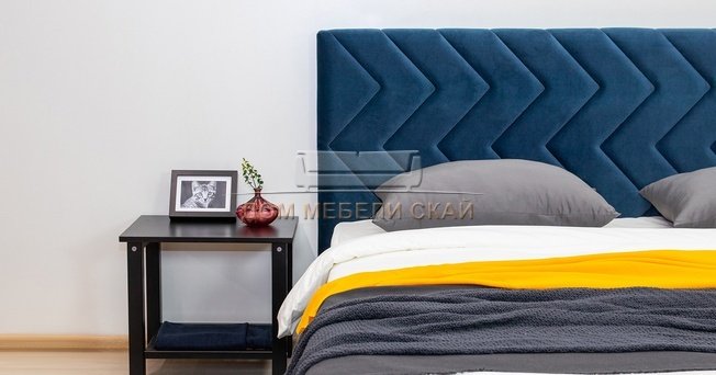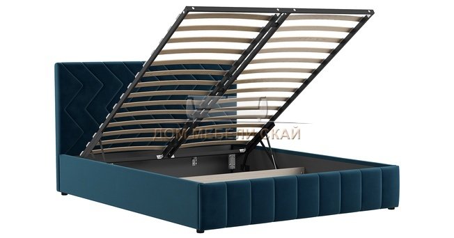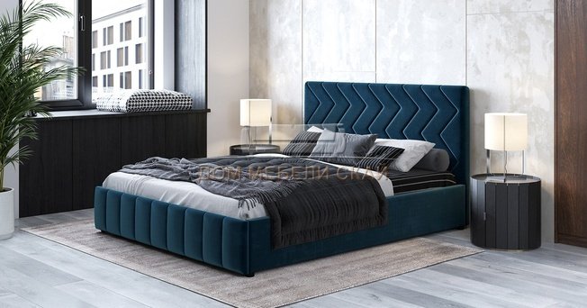 Кровать двуспальная Милана 160х200 с ПМ, лекко океан полуночно-синий