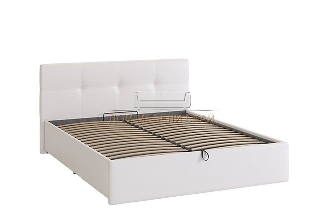 Кровать двуспальная 160x200 Куба с подъемным механизмом, белая экокожа