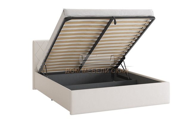 Кровать двуспальная 160x200 Ника с подъемным механизмом, белая экокожа