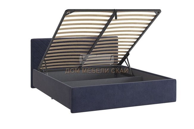 Кровать двуспальная 160x200 Сандра 2 с подъемным механизмом, синий велюр