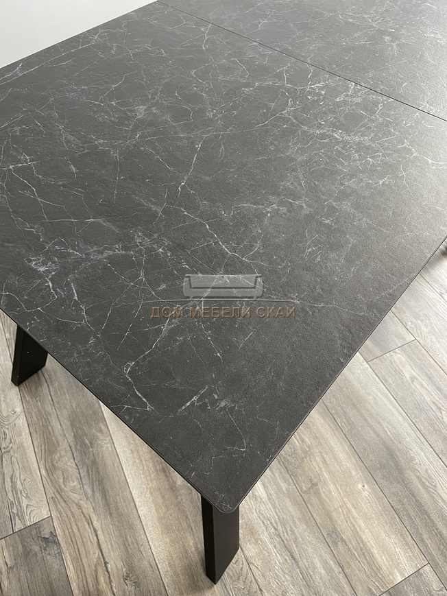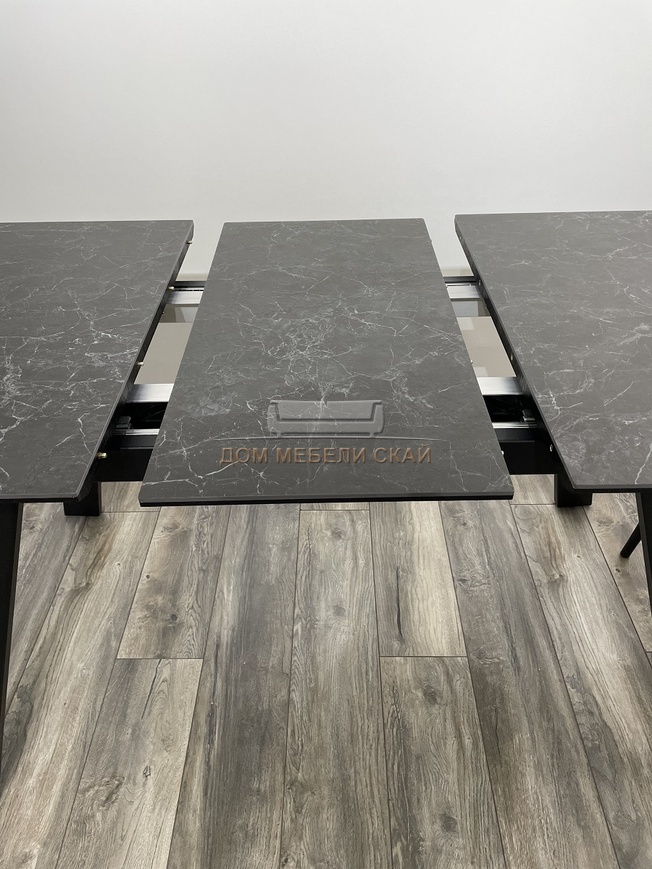 Стол обеденный раскладной Морис 140, темно-серый мрамор матовый керамика/черный каркас (125,3 KБ)