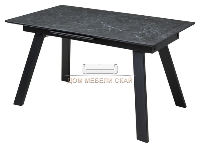 Стол обеденный раскладной Морис 140, темно-серый мрамор матовый керамика/черный каркас