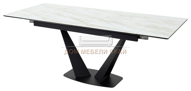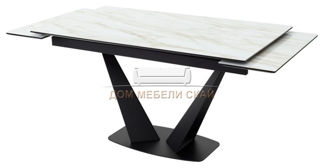 Стол обеденный раскладной Ниагара 140, бежевый мрамор стекло/черный каркас (88,7 KБ)