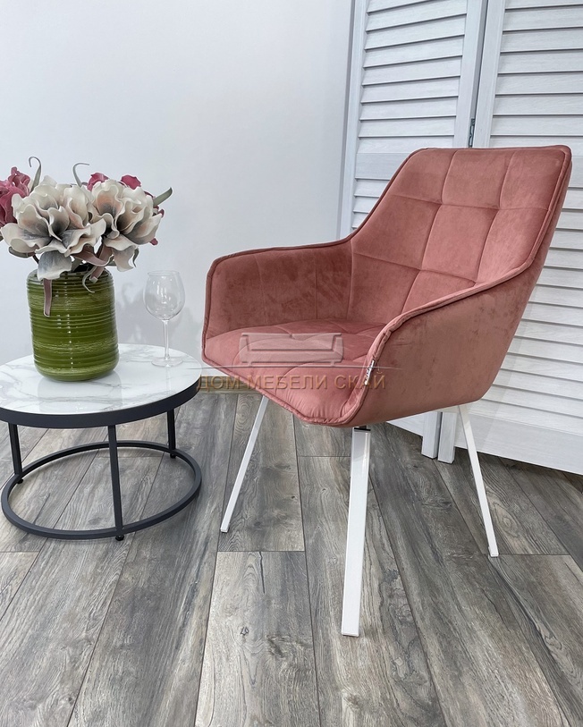 Стул поворотный MAVERICK, BLUVEL-52 велюровый розового цвета/белый каркас