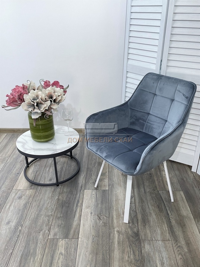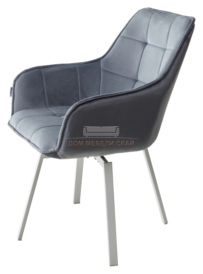 Стул поворотный MAVERICK, BLUVEL-06 велюровый серо-голубого цвета/белый каркас