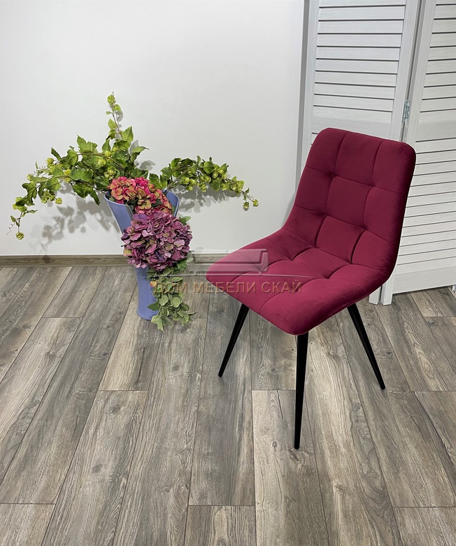Стул CHILLI-Q, велюровый винно-красного цвета #16/черный каркас