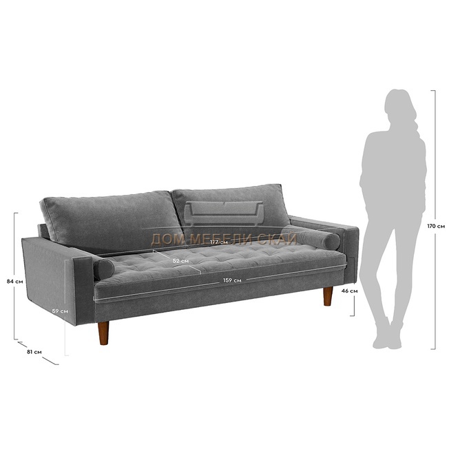 Диван Scott 3-х местный, серый