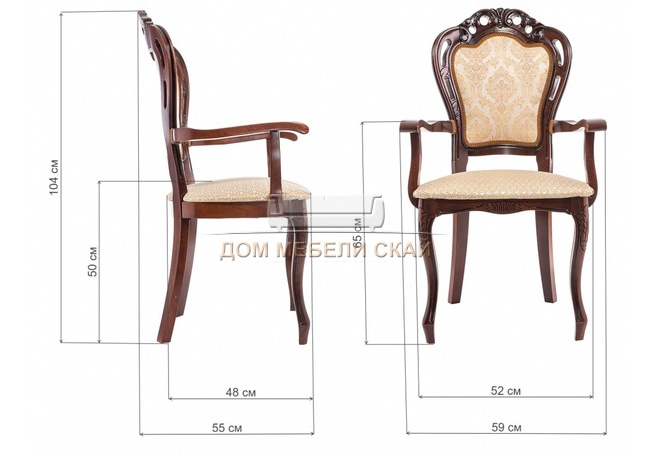 Стул-кресло Bronte, жаккард бежевого цвета/вишня патина