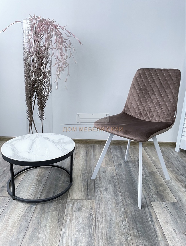 Стул DAIQUIRI, BLUVEL-38 велюровый светло-коричневого цвета latte/белый каркас
