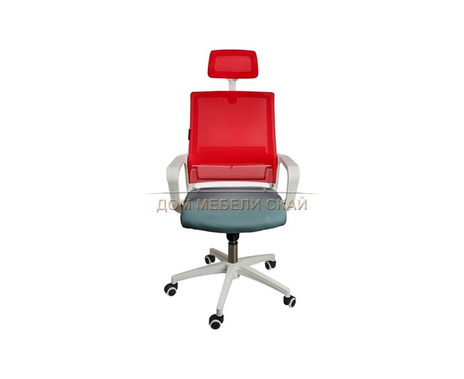 Кресло офисное Бит, белый пластик/красная сетка/темно-серая ткань