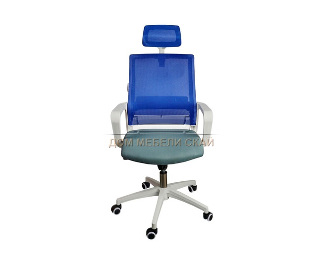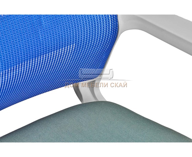 Кресло офисное Бит, белый пластик/cиняя сетка/темно-серая ткань