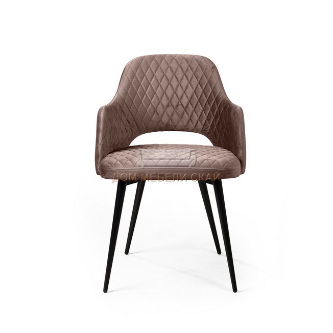 Стул с подлокотниками William, бархат пепельно-бежевого цвета 25/ черный конус/ромб