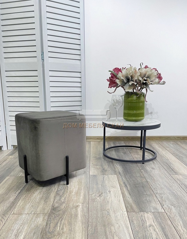 Пуф квадратный Феликс, велюр графитовый #14/черный каркас