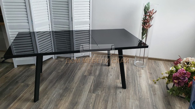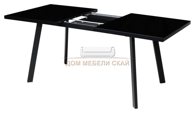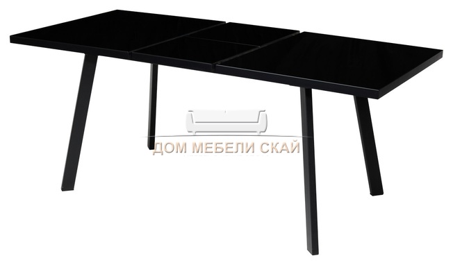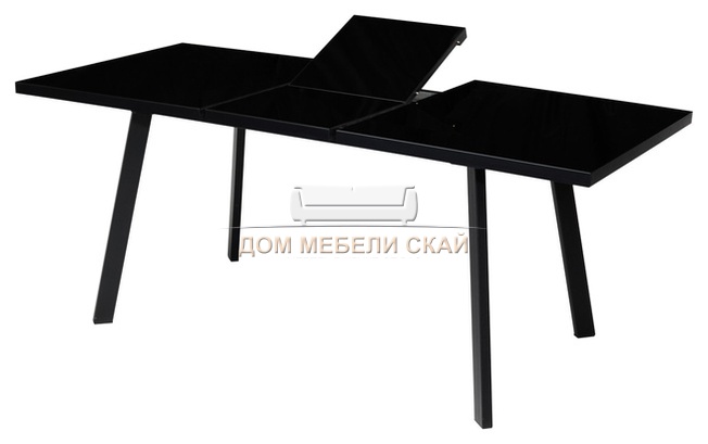 Стол обеденный раскладной ФИН 140, черное стекло/черный каркас