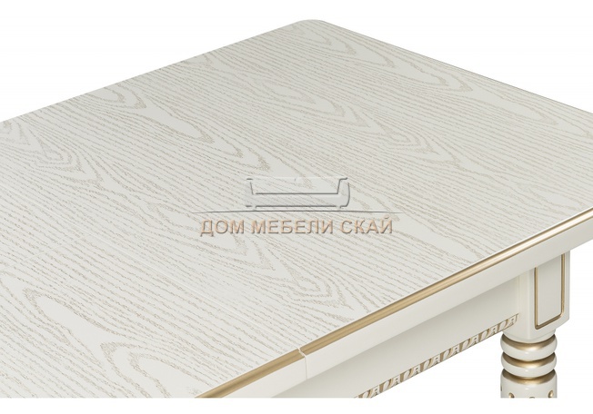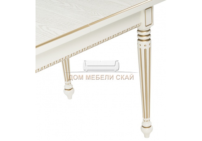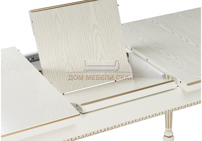 Стол обеденный раскладной Леджер, слоновая кость/патина золото