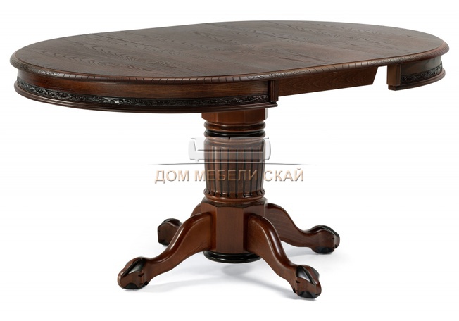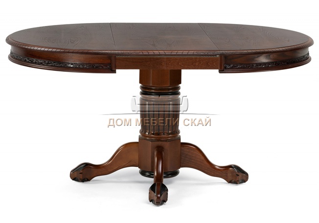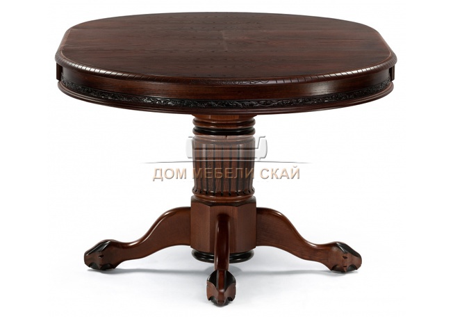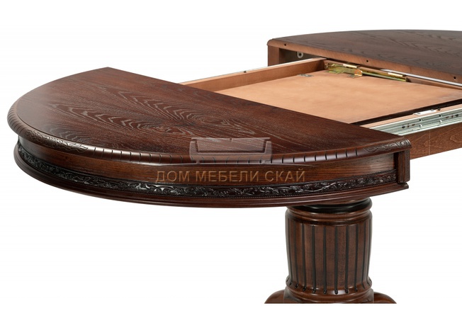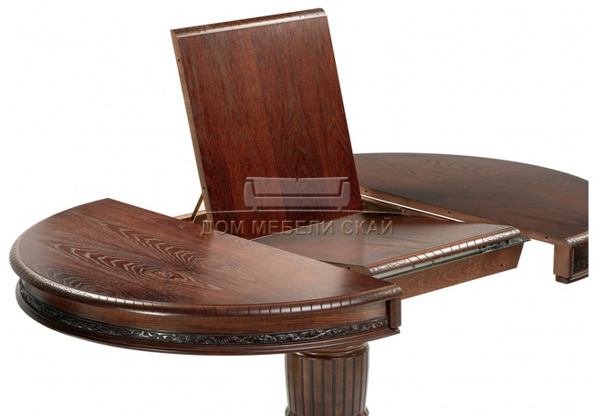 Стол обеденный круглый раскладной Альфред, орех/коричневая патина