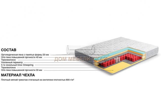 ортопедическая пена с памятью(memory)+opto пена повышенной прочности+термоволокно+5-ти зональный блок