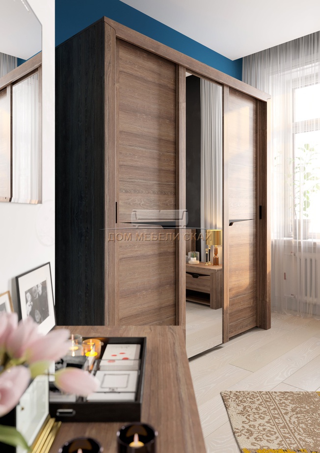 Шкаф-купе 3-дверный с зеркалом Соренто, дуб стирлинг/кофе стуктурный матовый (5,0 MБ)