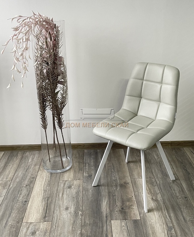 Стул CHILLI SQUARE, экокожа светло-серого цвета HK017-03/белый каркас