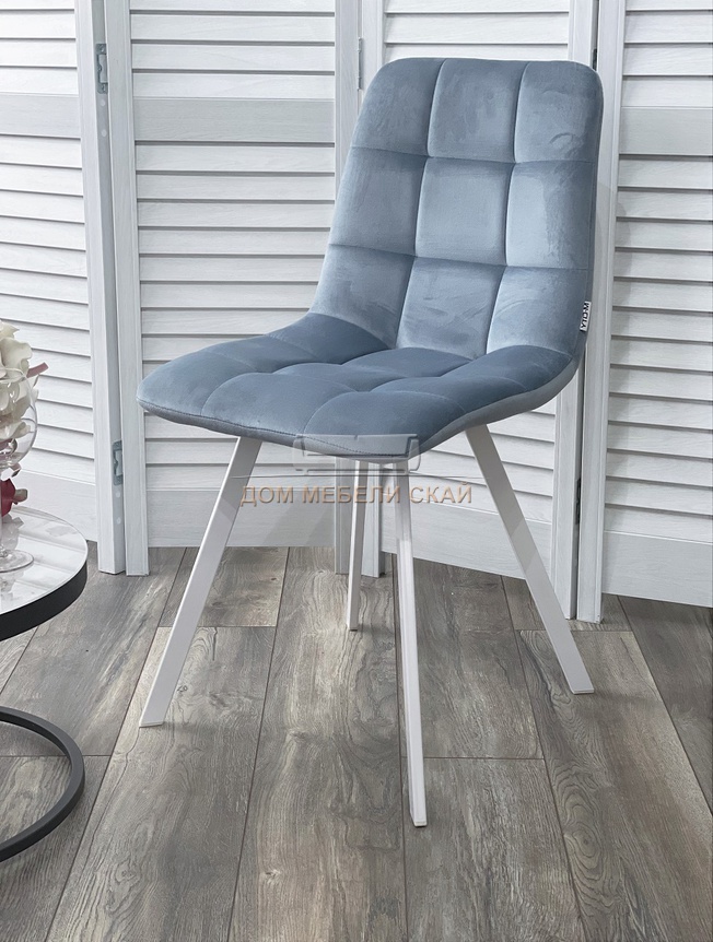 Стул CHILLI SQUARE, велюровый пудрово-синего цвета G108-56/белый каркас