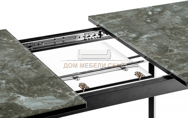 Стол обеденный раскладной Агни 110, королевский мрамор/черный матовый