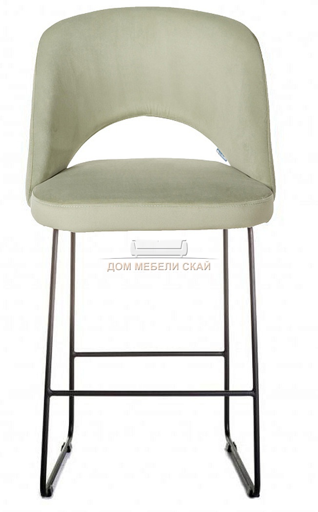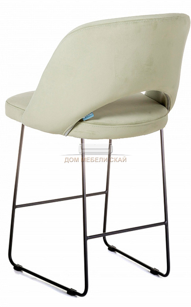 Стул барный Lars, велюровый светло-зеленого фисташкового цвета/линк черный