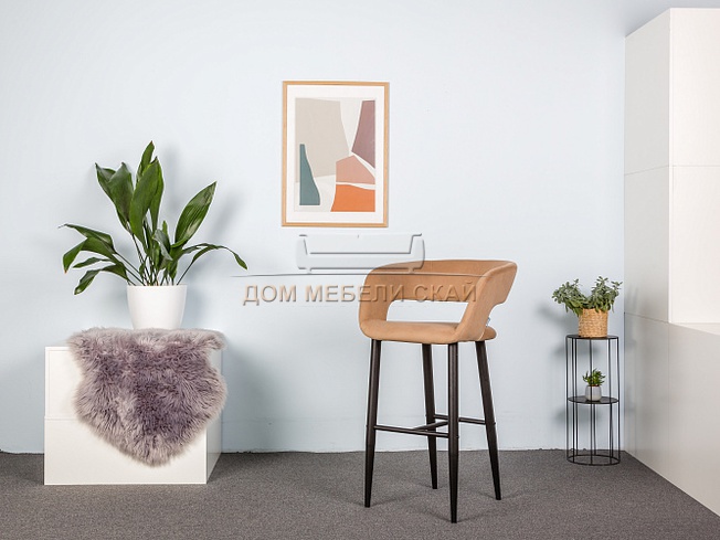 Стул-кресло барное Walter, велюровый бежевого цвета/черный