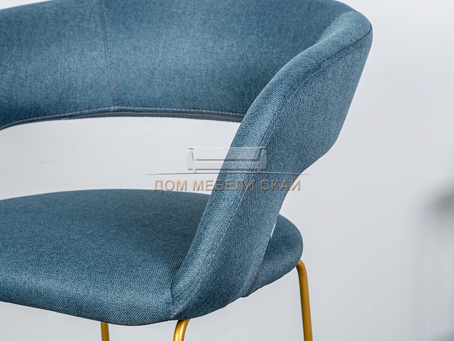 Стул-кресло полубарное Walter, рогожка синего цвета/линк золото