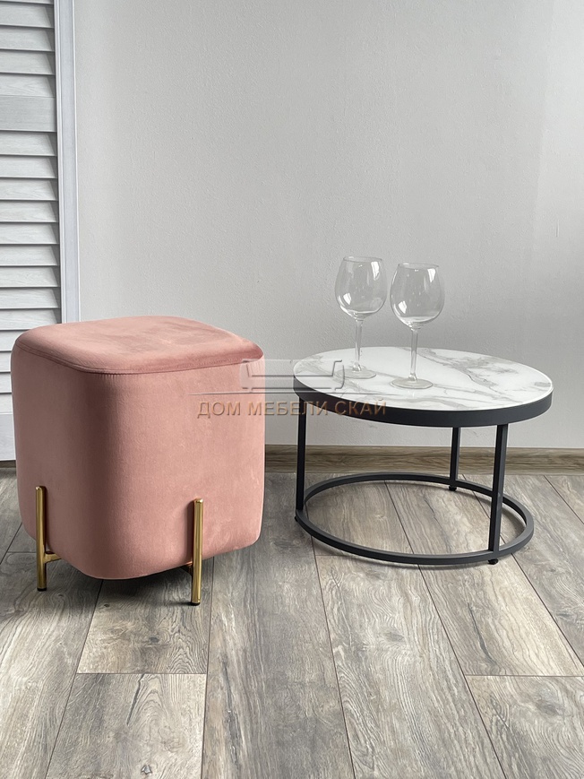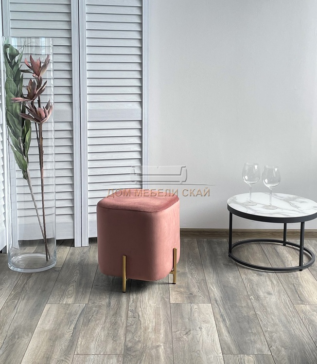 Пуф ARES, велюр розового цвета BLUVEL-52/золото