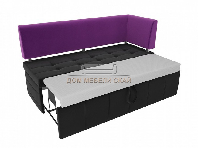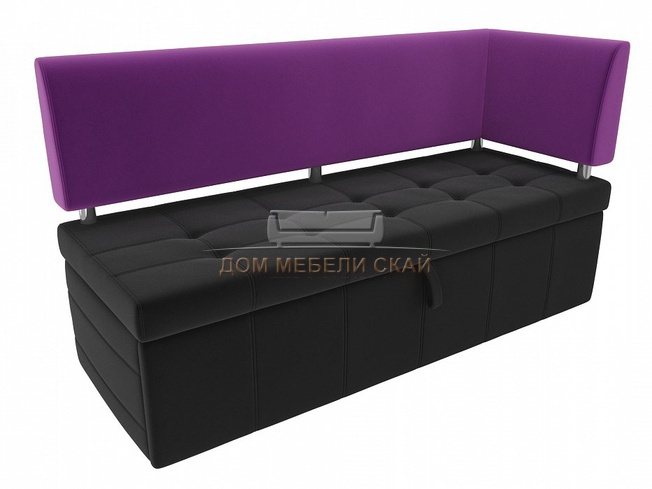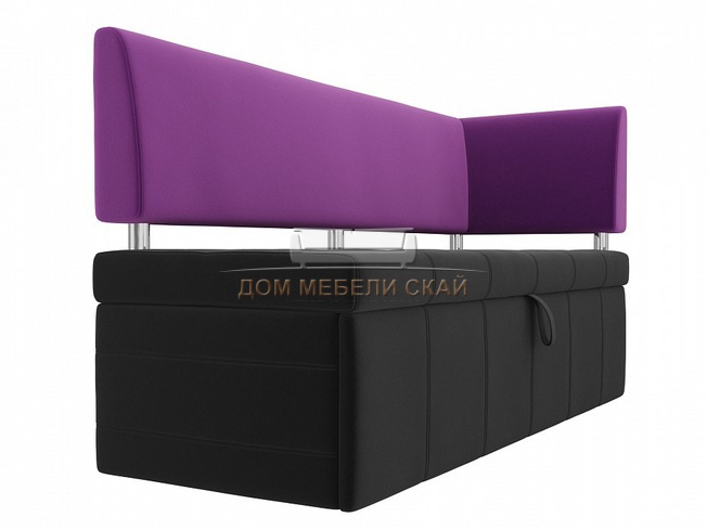 Кухонный диван Стоун с правым углом, черный/фиолетовый/микровельвет