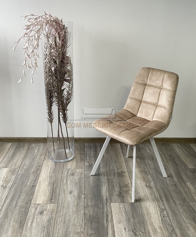 Стул CHILLI SQUARE, велюровый античный бежевого цвета PK6015-10/белый каркас