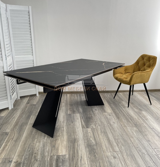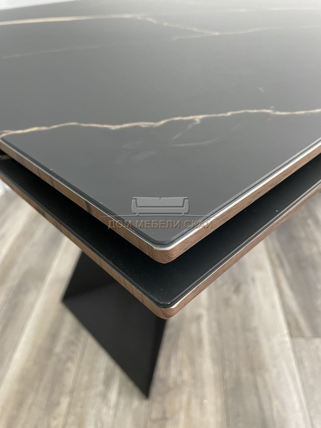 Стол обеденный раздвижной Купер 160, обсидиан/стекло/черный каркас (125,3 KБ)