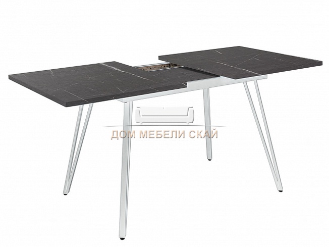 Стол обеденный раскладной Диего 120 см, мрамор графит/белый