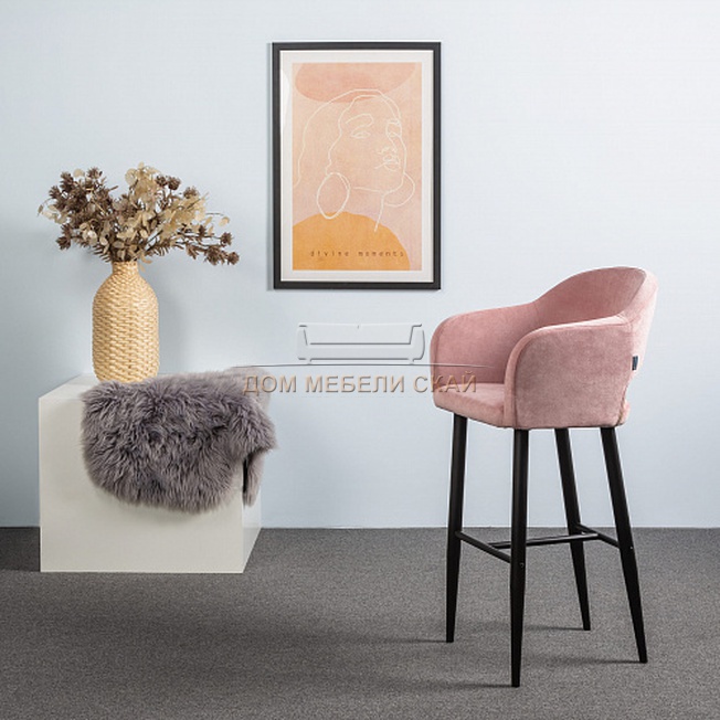 Кресло барное Oscar, велюровый розового цвета/черный